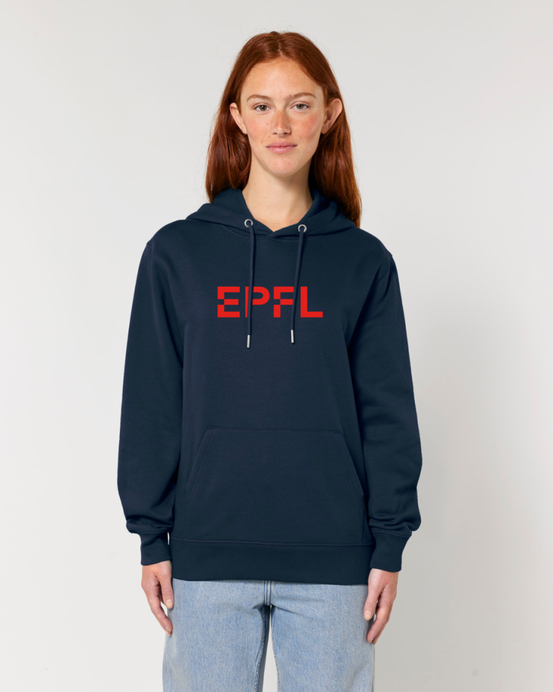 Sweat shirt bleu marine avec logo EPFL en rouge (brodé) devant. Coupe unisexe